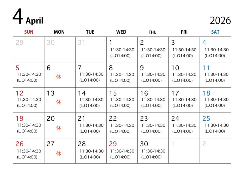 4月の営業スケジュールのお知らせ